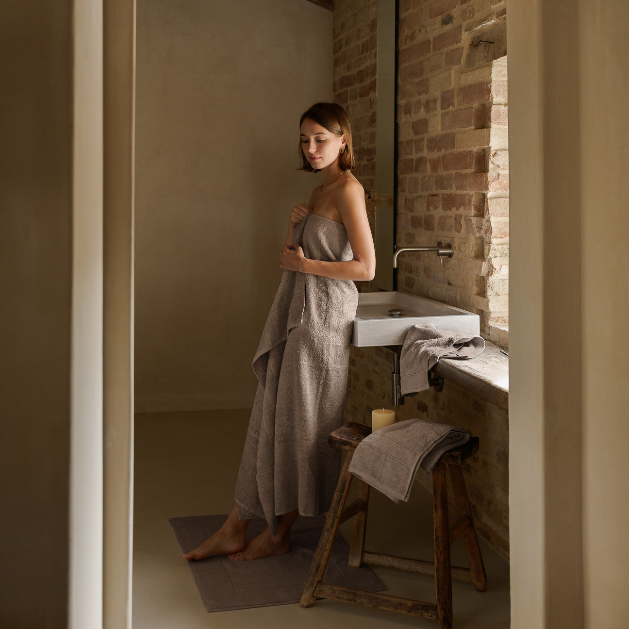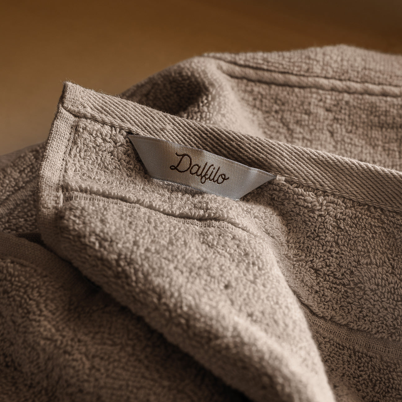 Dalfilo Plush Line is characterised by a pure cotton towelling of 500 g/m2 for towels and 470 g/m2 for bathrobes, produced using a weft and two warps worked to different tensions and coupled with soft-twist yarns. This processing gives the fabric a greater absorbency capacity and unmistakable softness, easy drying and a not excessive bulk.