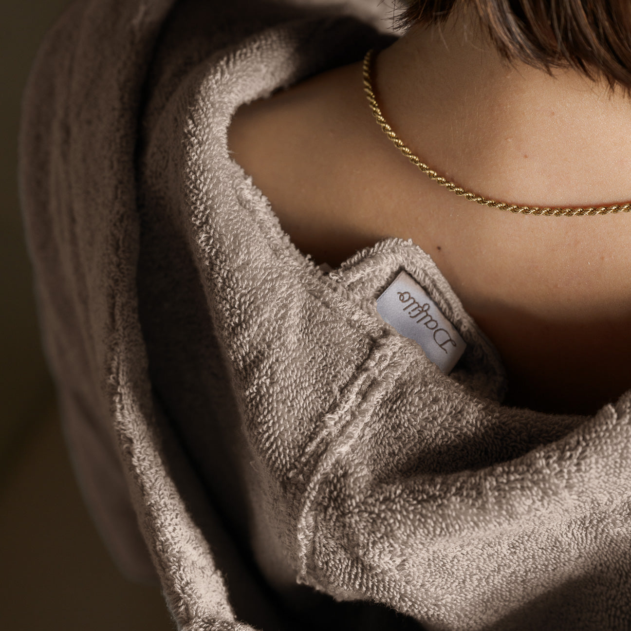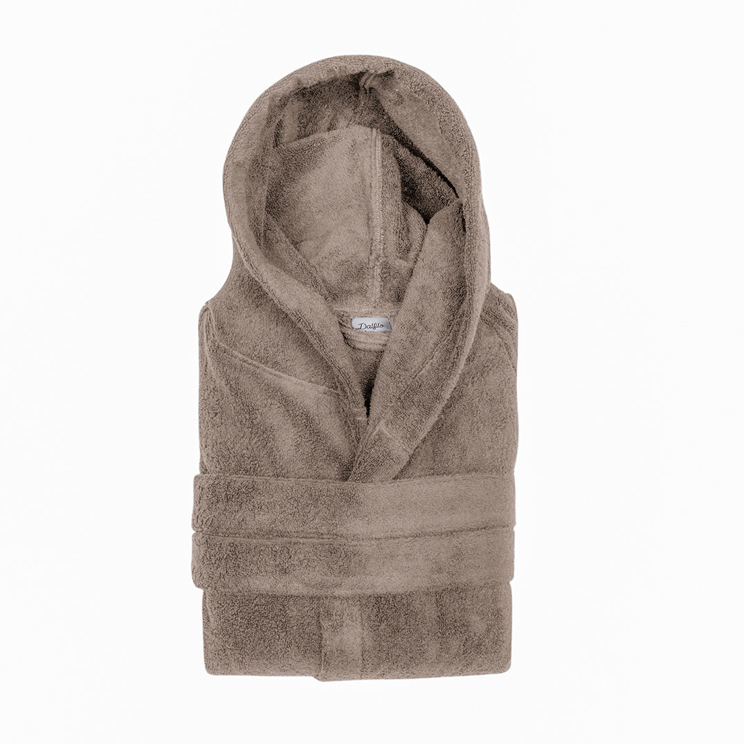 Dalfilo Plush Line is characterised by a pure cotton towelling of 500 g/m2 for towels and 470 g/m2 for bathrobes, produced using a weft and two warps worked to different tensions and coupled with soft-twist yarns. This processing gives the fabric a greater absorbency capacity and unmistakable softness, easy drying and a not excessive bulk.