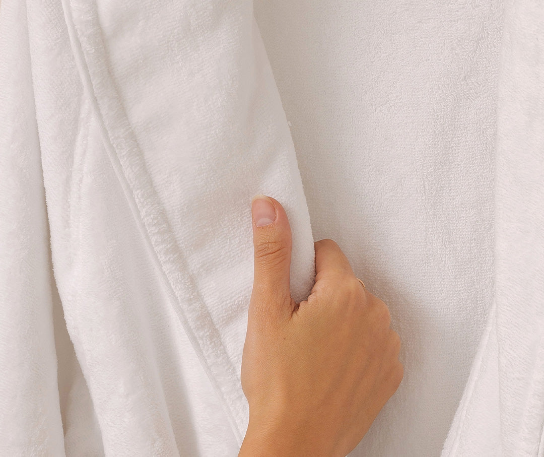 Superior Dalfilo towelling is made of 450 g/m2 pure cotton selvedge on the outside. Velvety, elegant appearance and unrivalled softness.